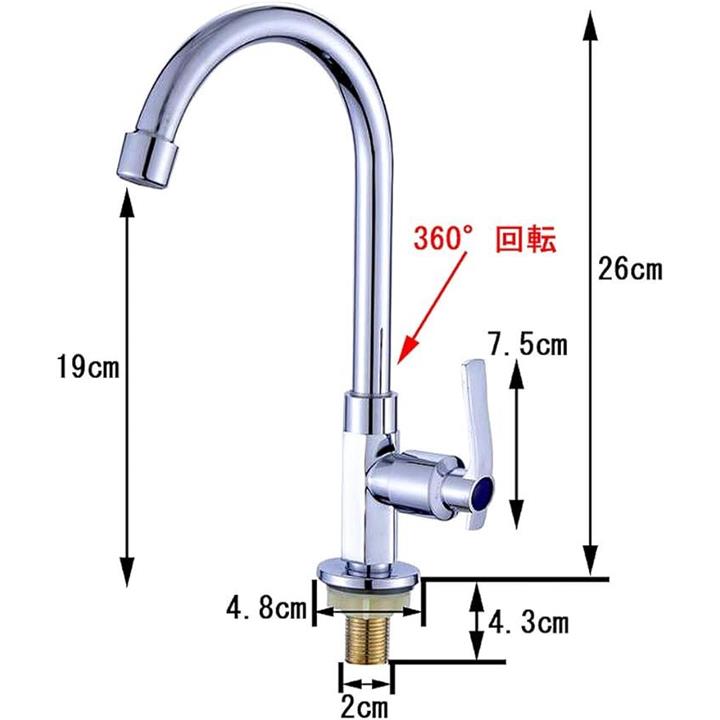 ライフシステム キッチン 洗面用 シングルレバー 単水栓 手洗いボウル 360°回転 グースネック スワン 洗面台 蛇口 ST47