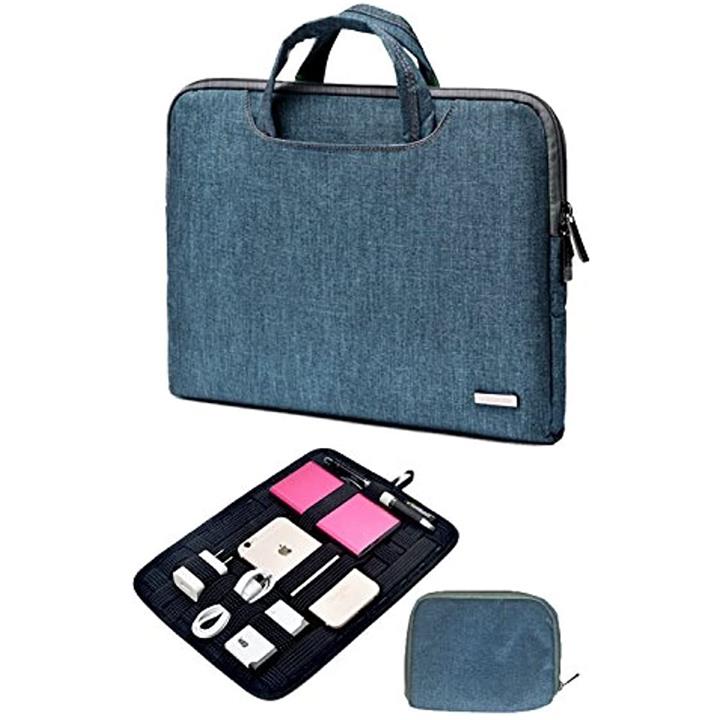 「互換品」パソコンケース 耐衝撃 撥水加工 おしゃれなデニム素材 PCバッグ タブレット ケース アクセサリ収納ボード セット (13.3インチ, デニム(ダークブルー)) |