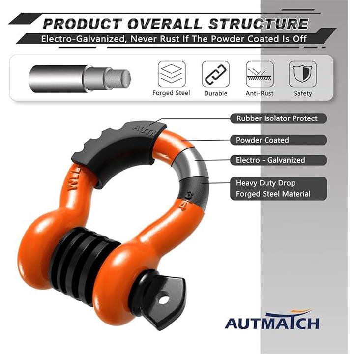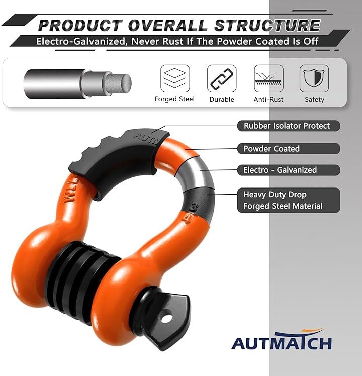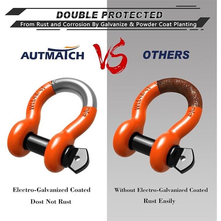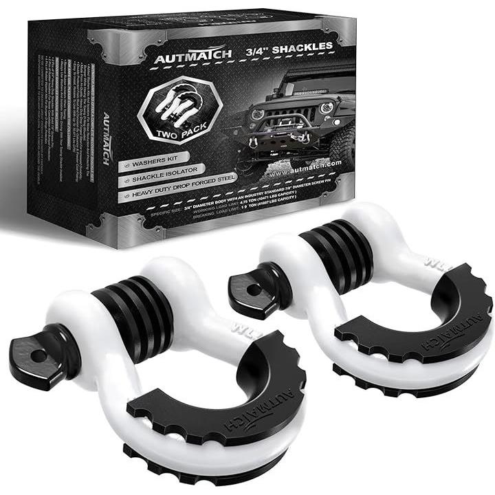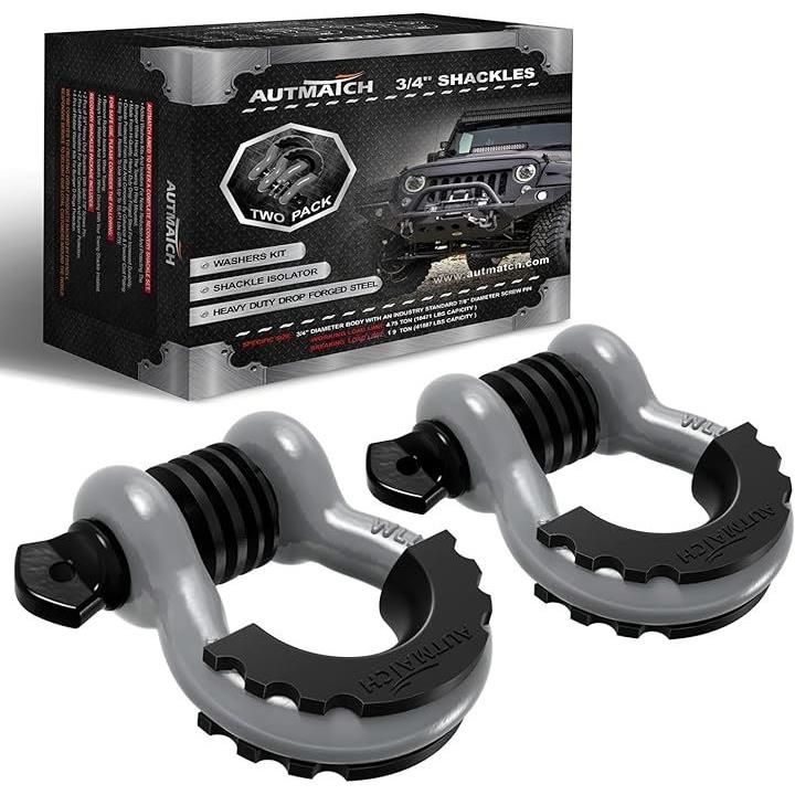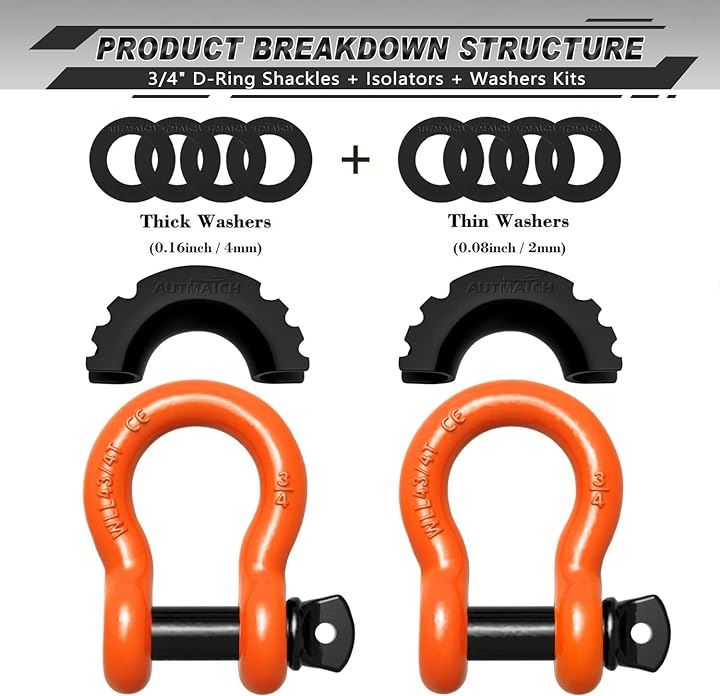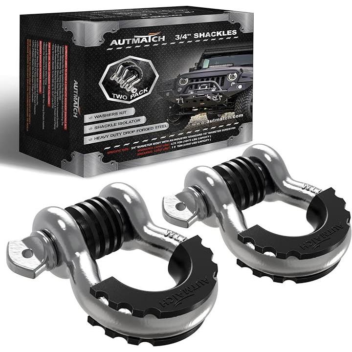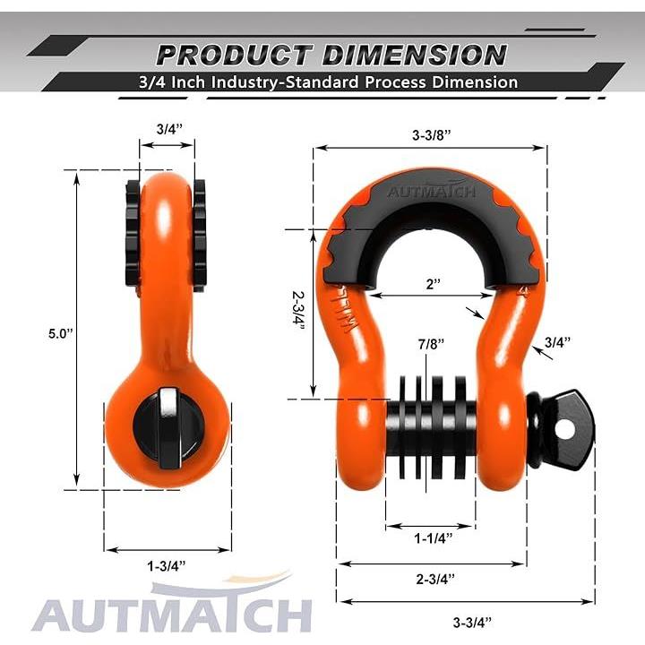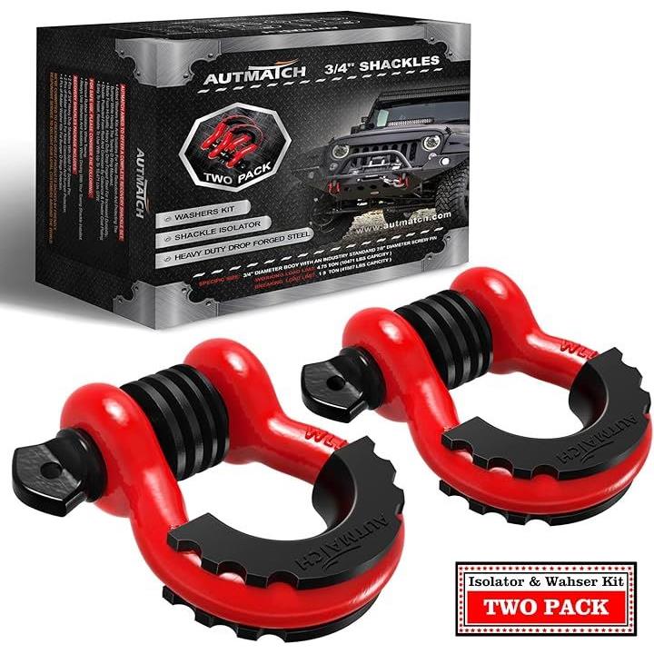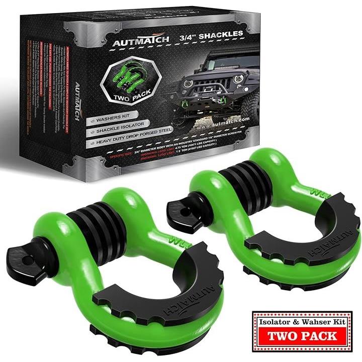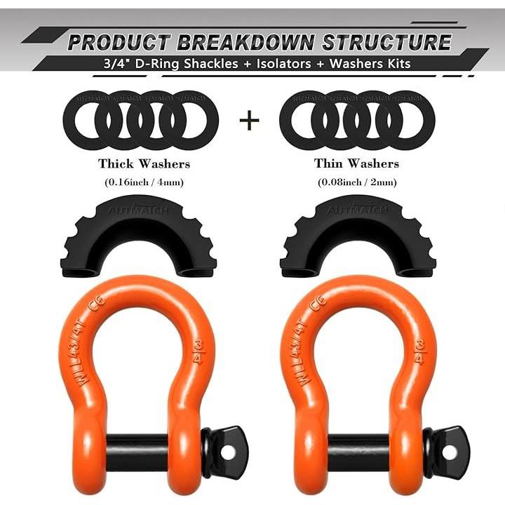 Dリング シャックル 3/4 2個セット 破断強度約19トン 7/8 スクリューピン シャックルアイソレーター ワッシャー付き 牽引ストラップ