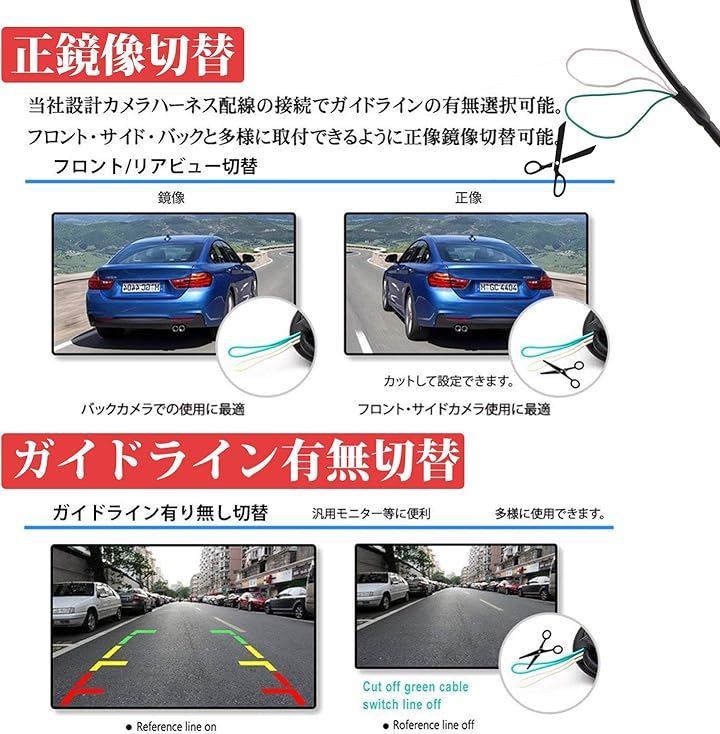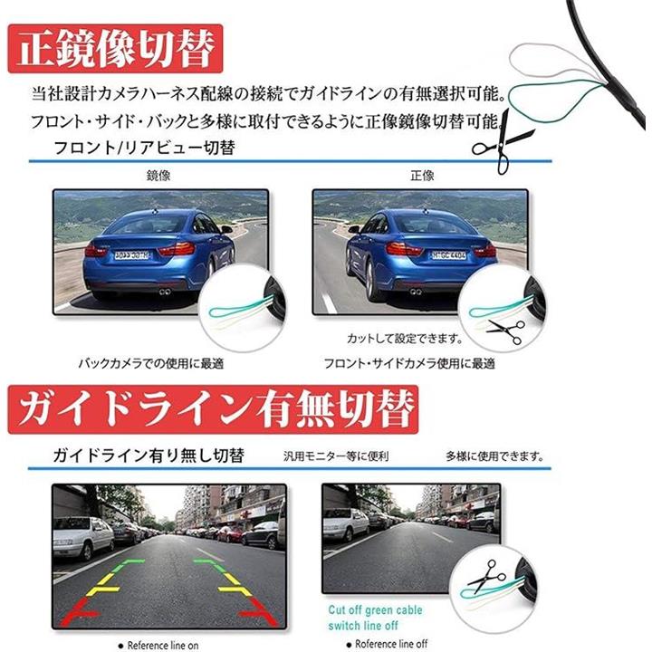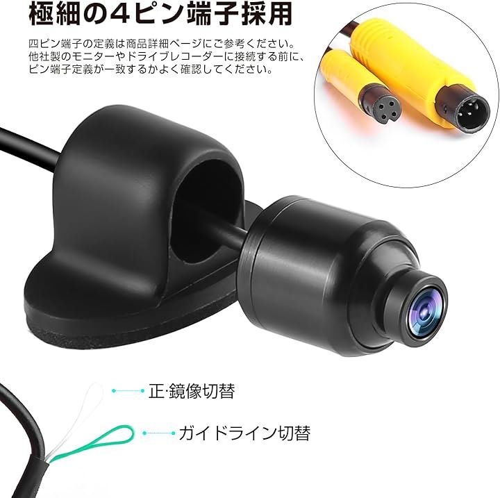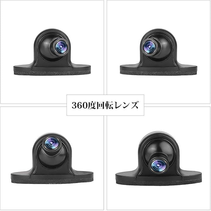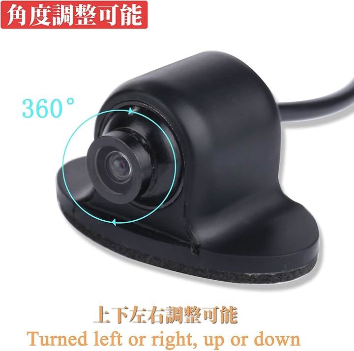 サイドカメラ フロント/バックカメラ兼用 穴開けなく 超小型 IP68防水 360角度回転可 正像・鏡像切替 ガイドライン有無切替対応 暗視機能 12V