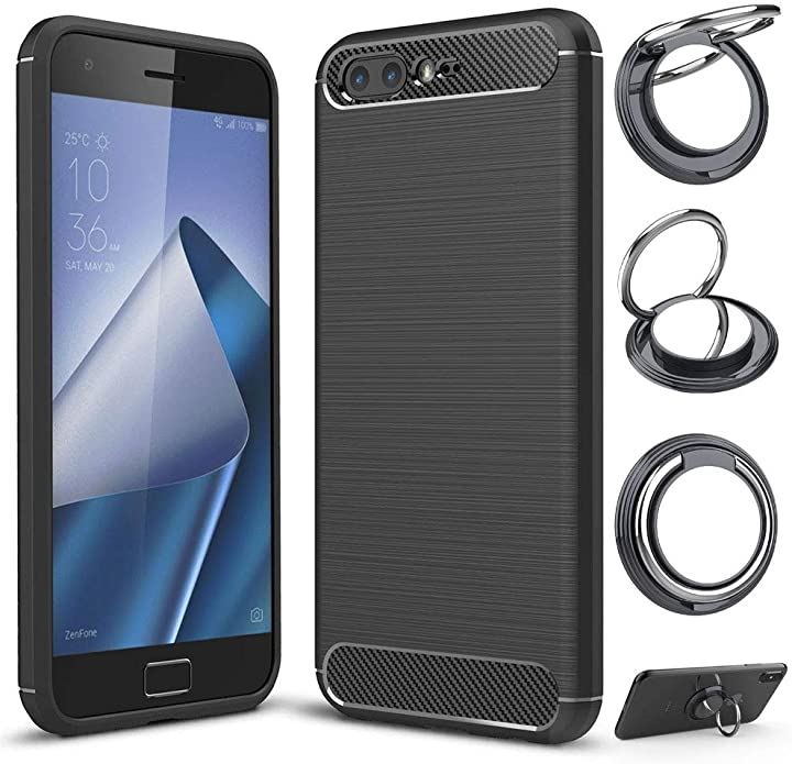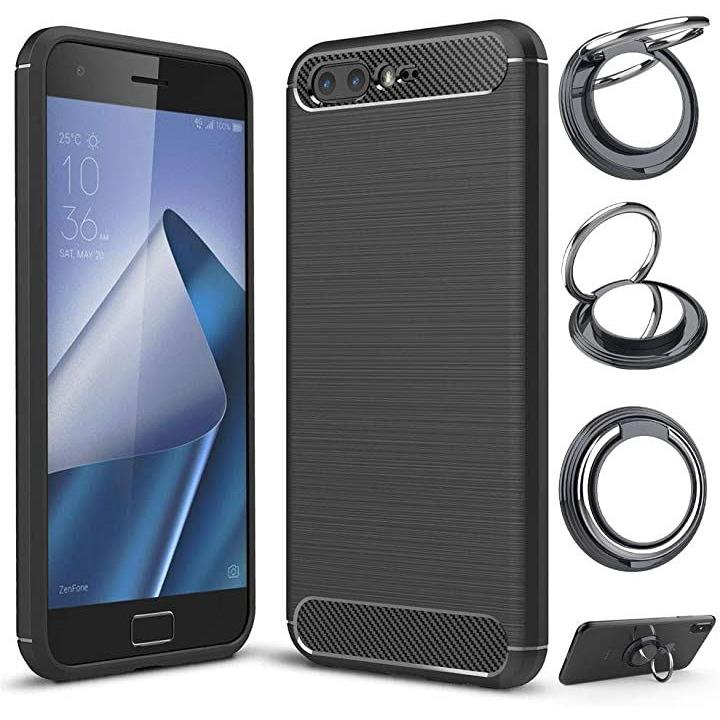 スマホリングスタンド付ケース カバー 炭素繊維 TPU シリコン素材を使用した 保護バンパー アンチグレア素材を使用した耐水、防指紋、散熱加工の超薄型、スタイリッシュバンパーケース ブラック