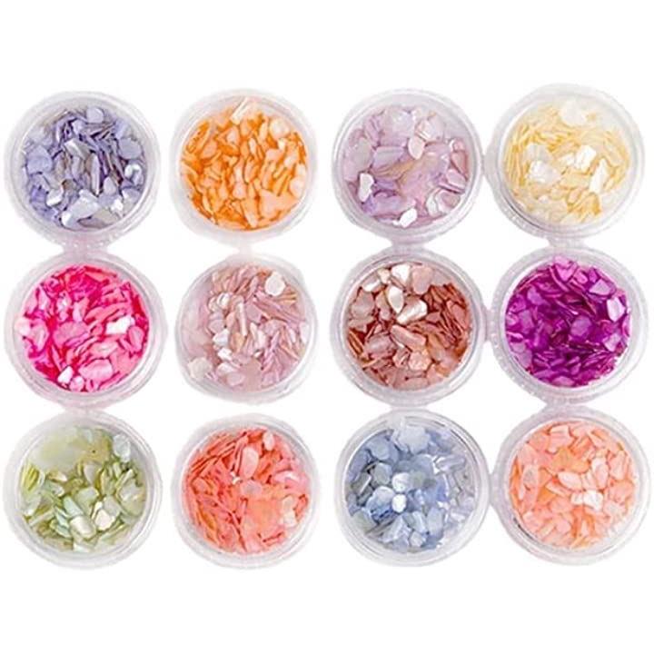 シェルストーン ナチュラルカラー 細かいタイプ-12カラーセット ネイルアート