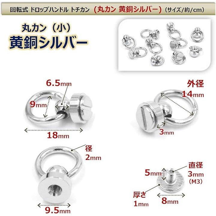トチカン 真鍮 ジョイント金具 レザークラフト 止め金具 バッグ ハンドル ドロップハンドル 財布 高さ18mm
