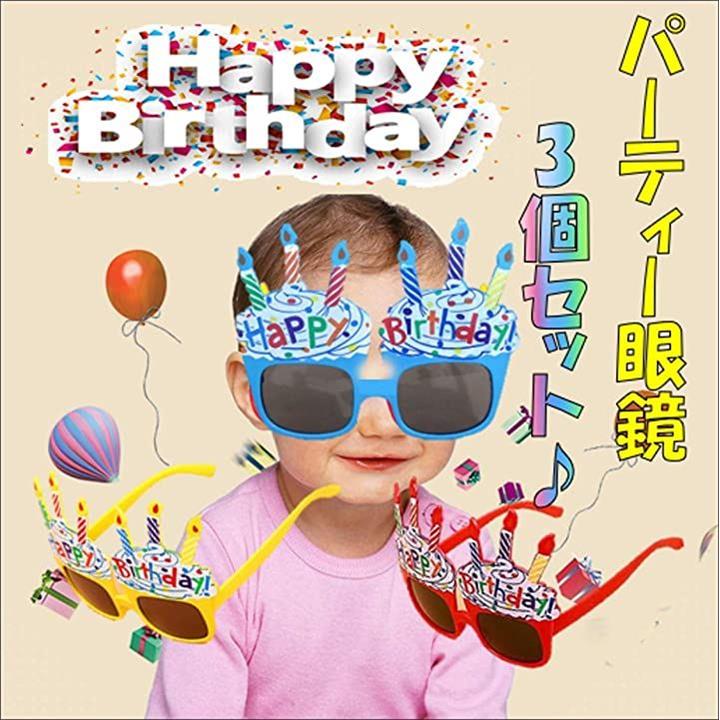 ハッピーバースデー サングラス 3色セット Happy Birthday 誕生日 バースデーパーティー おもしろ眼鏡