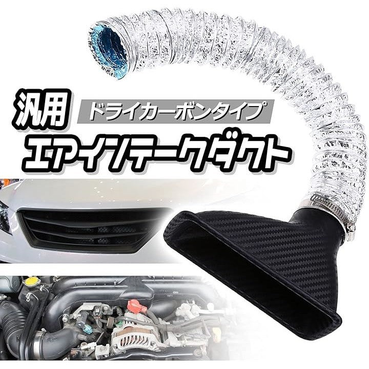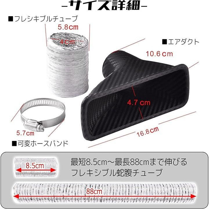 エスネット 汎用 エアインテーク ダクト ドライ カーボン 風 バンパー ボンネット 吸気 アルミ SN-192-N1 ファンネル 伸縮 ホース