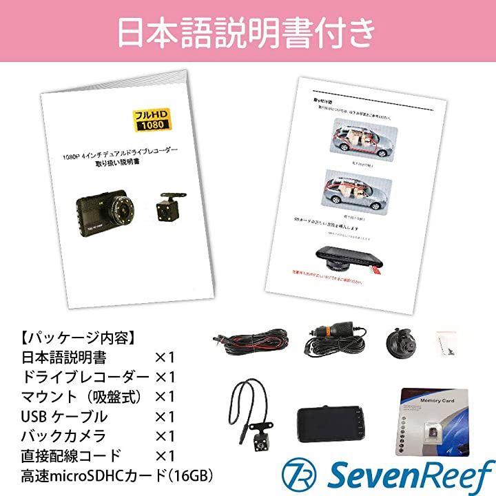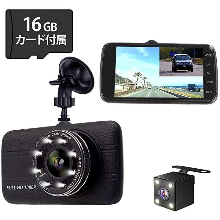 ドライブレコーダー 前後カメラ 初心者用 高速SDカード16GB付 日本語取扱説明書 あおり運転対策 1080PフルHD 危険運転対策 女性用 軽自動車 コンパクトカー 衝撃録画 常時録画 駐車中監視 広角レンズ