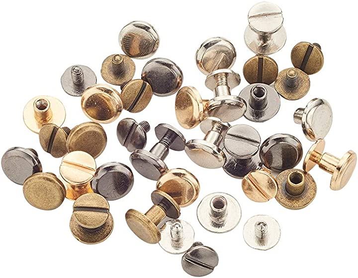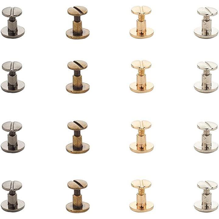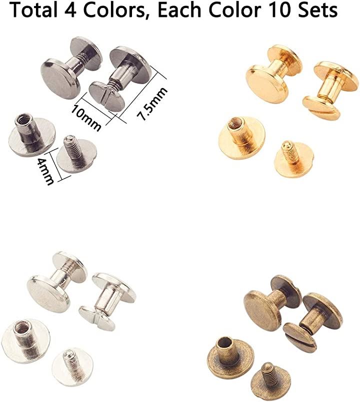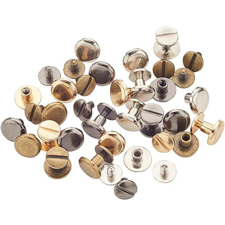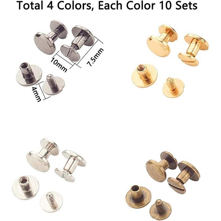40組 4色 合金 レザークラフト 底びょう リベット スタッズ パーツ 鋲 スタッド ネジ式 バッグ ベルト レザーブレスレット