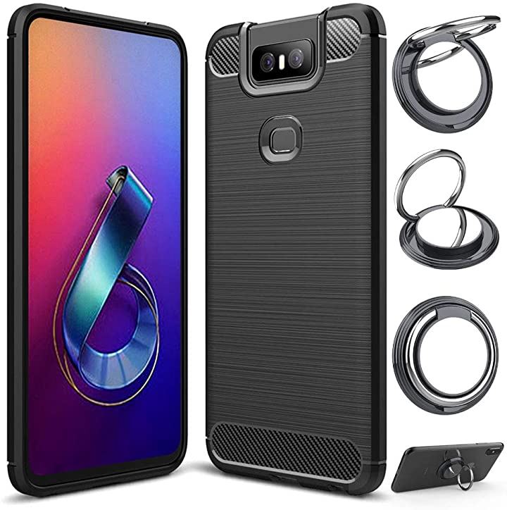 スマホリングスタンド付GTOケース カバー Qi充電対応 ワイヤレス充電対応 炭素繊維 TPU シリコン素材を使用した 保護バンパー