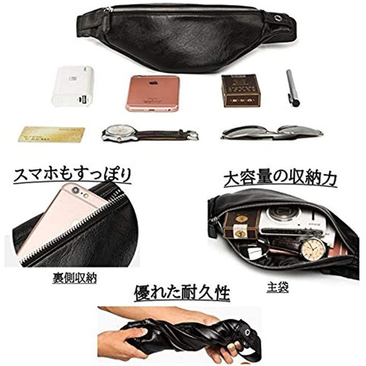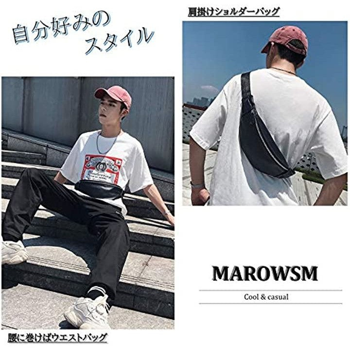 マローサム 職人が作る ウエストポーチ ウエストバッグ ショルダーバッグ シンプル メンズ 男女兼用 黒 ブラック