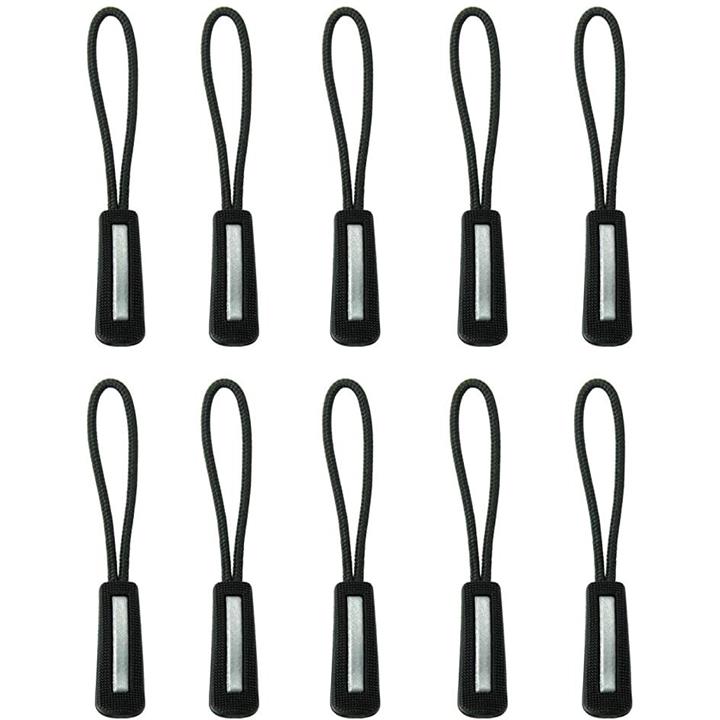 ジッパープル 反射材付き ファスナー チャック 楽々 開閉 取り付け簡単 つかみやすい ノンスリップ ジッパータブ プルコード 5カラー 各10本セット