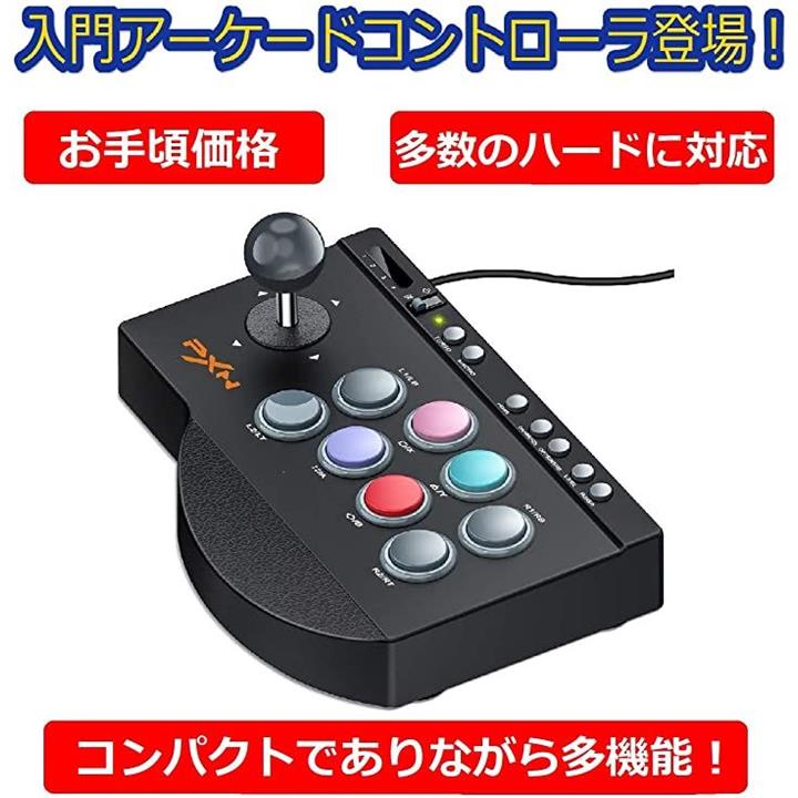 ・*「多数のゲームハード対応」いろいろなハード機のゲームをアケコンでプレイしたい、けど、高価なものや複数台購入するのはちょっと・・・という方におすすめです。PXN-0082はこれ1台でNintendo Switch/PS4/PS3/XBOX ONE/PC/Androidに対応します。PCで使用する場合は、Windows7/Windows8.1/Windows10との互換性があります。