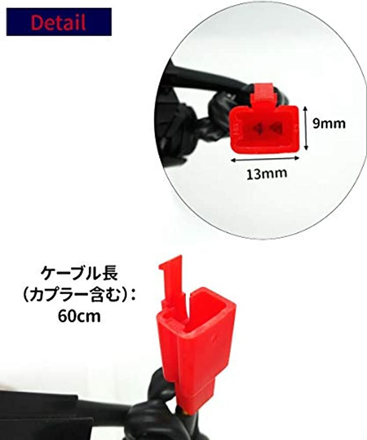「仕様詳細」差込部径:20mm,コネクタタイプ:2ピンメス,ケーブル長(カプラー含む):60cm