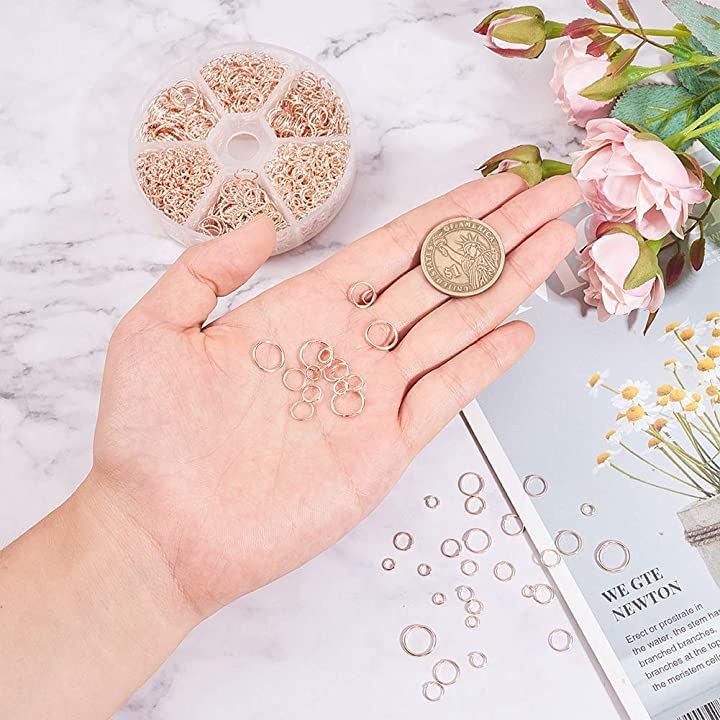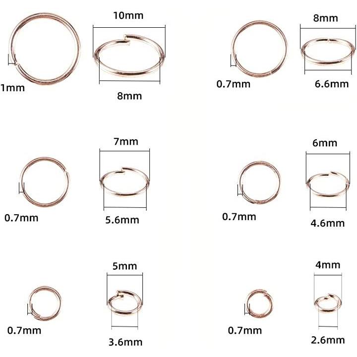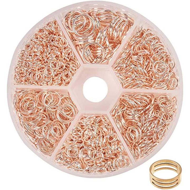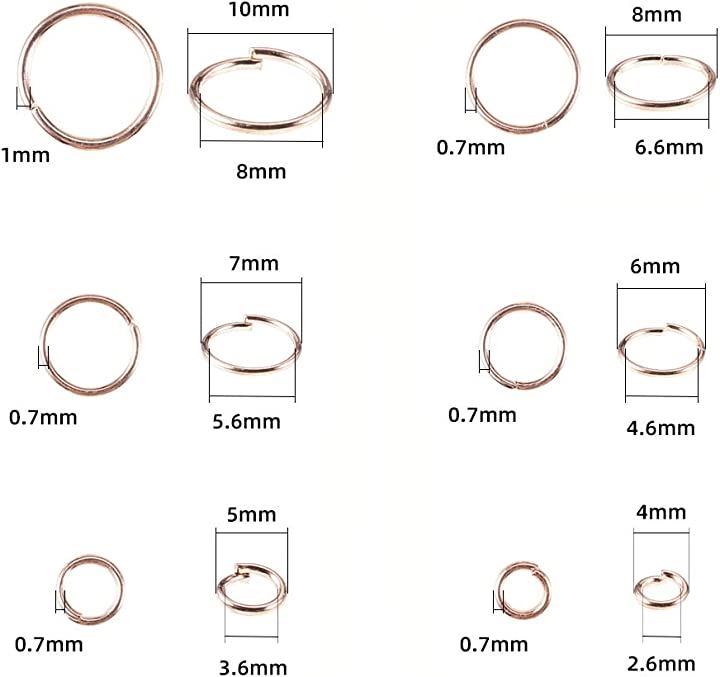 6種セット リング 直径2-8mm 鉄製 マルカン 丸環 指貫つき 金具セット 基礎パーツ ジュエリー DIY用 手芸用品 クラフト用品 アクセサリーパーツ ローズゴールド