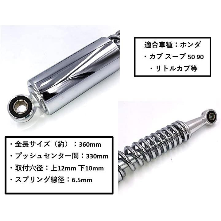 互換品 汎用 ホンダ バイク カブ スーパーカブ 50 90 リトルカブ メッキ リア リヤ サスペンション 全長36cm 2本set
