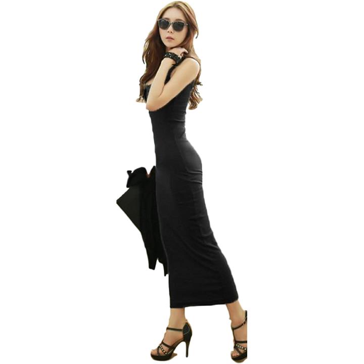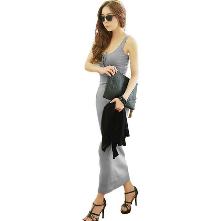 [スリーピングシープ] シンプル リブニット ロング ワンピース 大人 可愛い タンクトップ マキシ丈 ノースリーブ キャミ セクシー ワンピ |