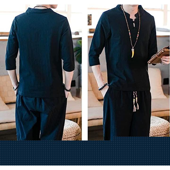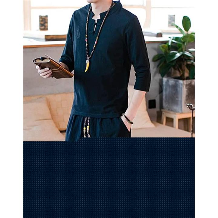[ケースタイル アップ]甚平 メンズ 半袖 セットアップ (ネイビー, XL) |