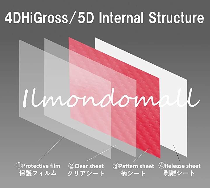 ・素材:高品質高分子型フィルム シートタイプ:4D(ハイグロス調) 4Dカーボンシートにクリアフィルムをのせたような艶やかなカーボンシートです。