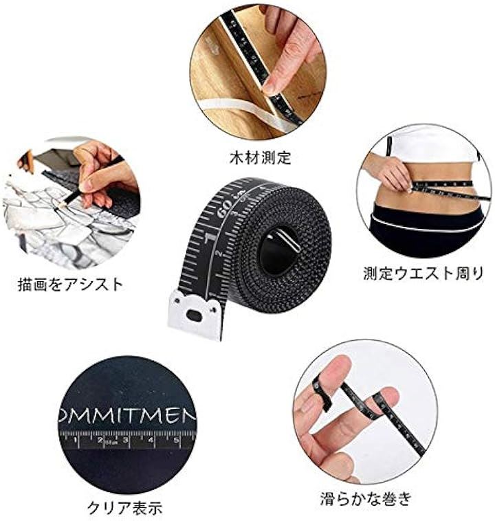 メジャー 裁縫 150cm/60inch 黒 16mm幅 テープメジャー センチ インチ 巻尺 1.5m 洋裁メジャー 巻き尺 手芸 服 テーラー縫製 ウエストメジャー 両面目盛 測定用
