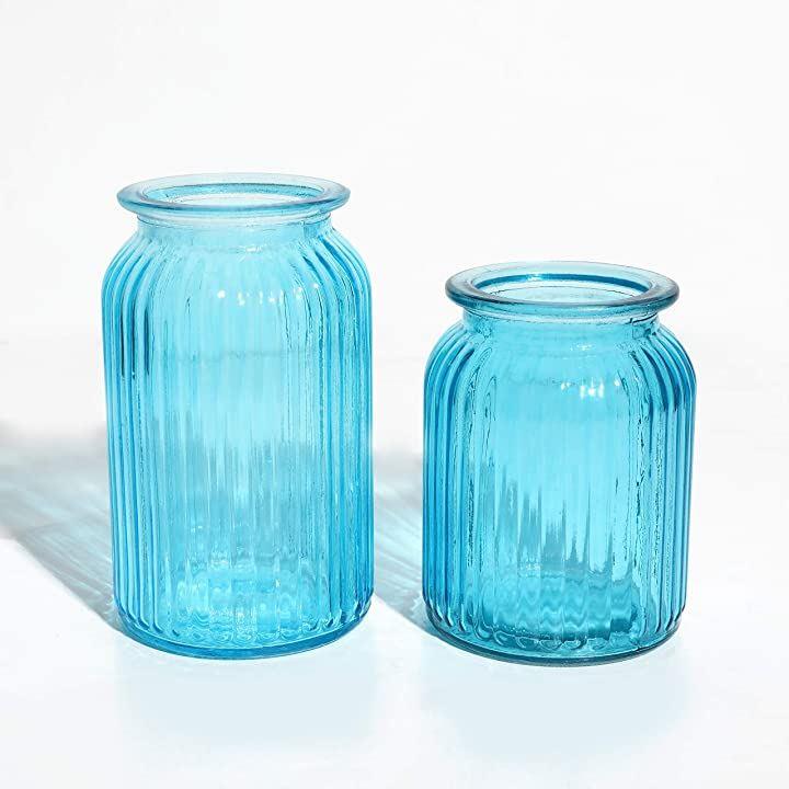 北欧 アンティーク アンティーク風 アクアブルー ガラス フラワーベース 硝子瓶 花瓶 2個セット