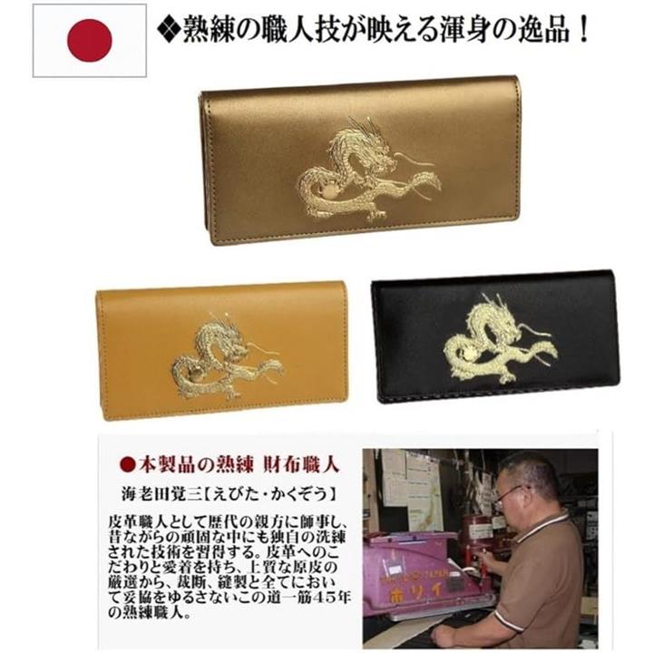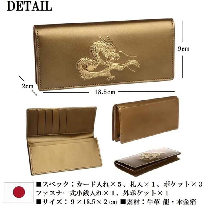 風水 秘伝 皇帝龍 長財布 本金箔 刻印 牛 本革 メンズ 金色 ゴールド 黄金 根付 進呈 日本製 龍神チャーム