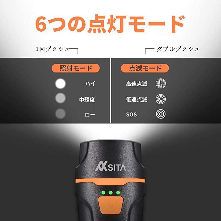 ハイ・ミドル・ロー・低速点滅・高速点滅・SOSの6つ点灯モードがあります,ボタン式で操作簡単です。