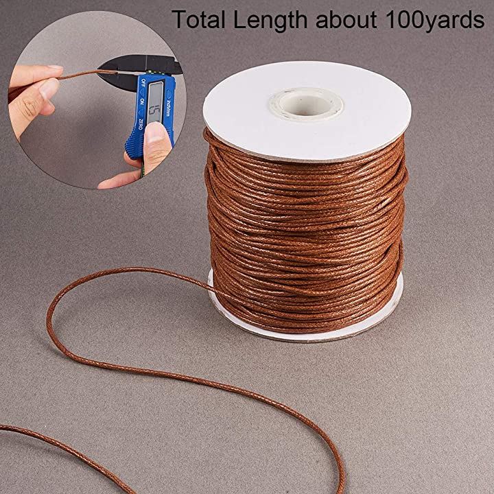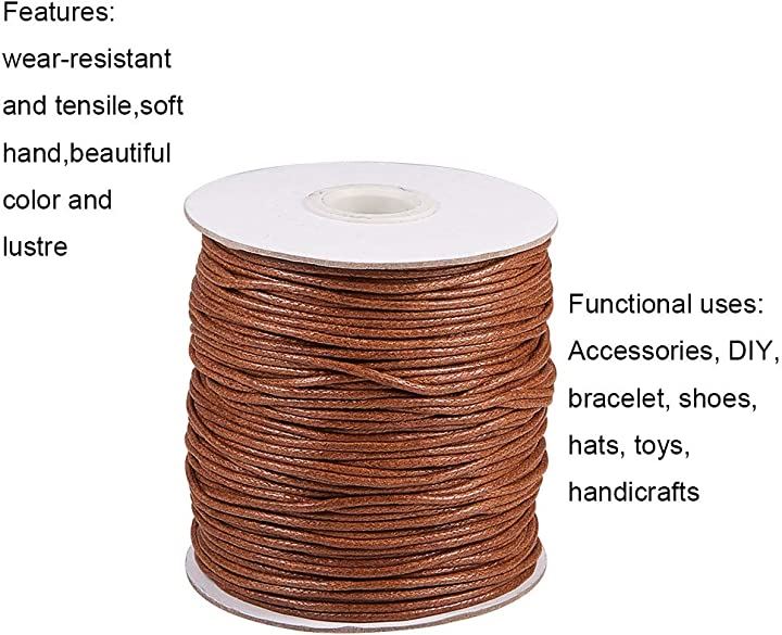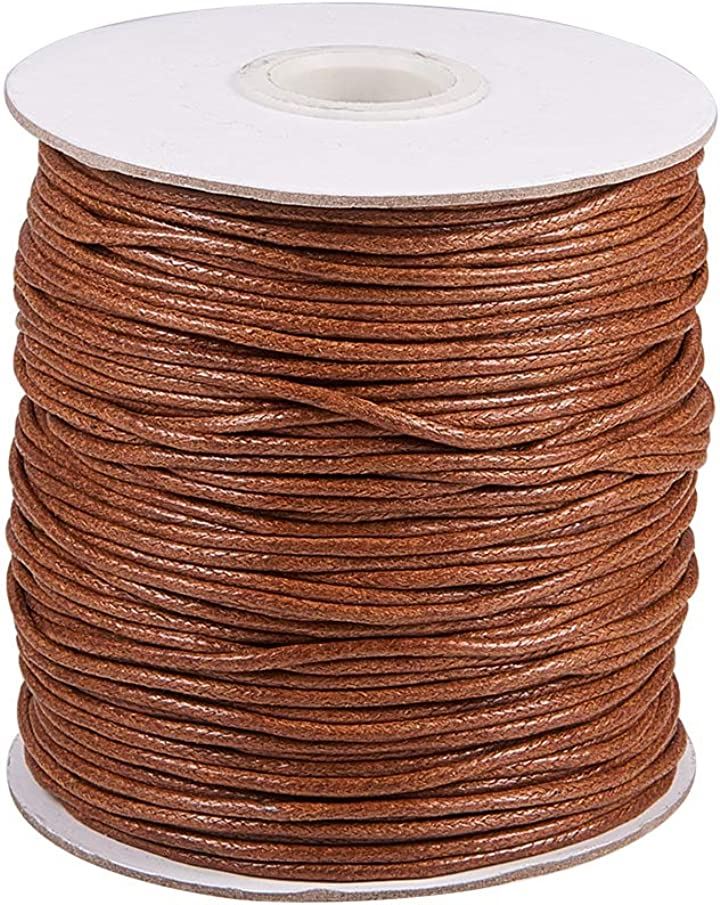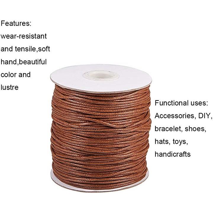 約100ヤード/巻き ポリエステル製 蝋引き紐 直径1.5mm ロウ引き糸 ワックスコード サドルブラウン
