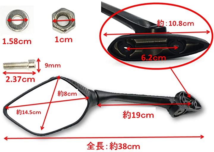 互換品 バイクミラー ヤマハ YZF 系 R3 R25 YZF-R3 YZF-R25 RH07J RG10J 13-17年