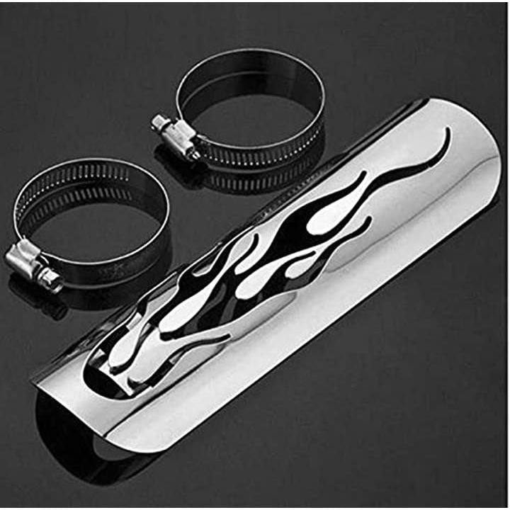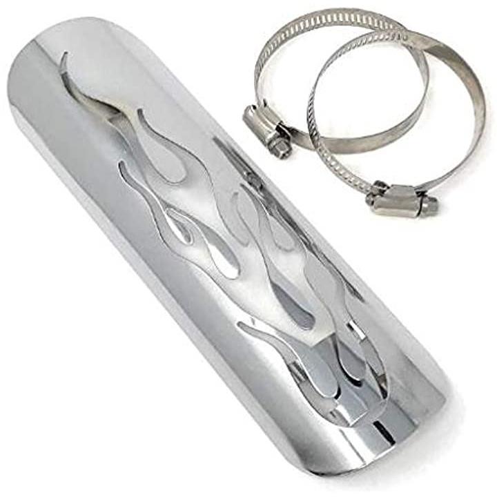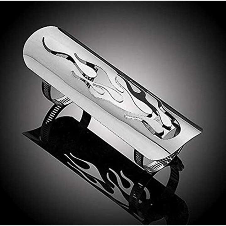 互換品ヒートガード ハーレー バイク マフラーガード マフラーバンド シルバー 湾曲 汎用 炎 ファイヤー