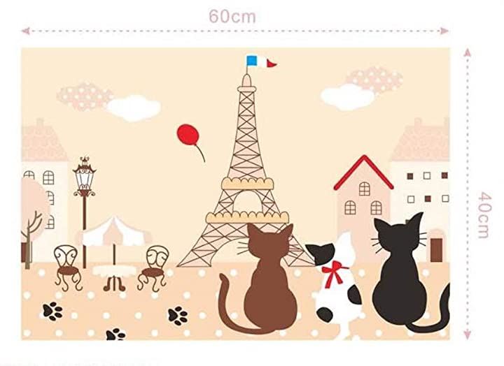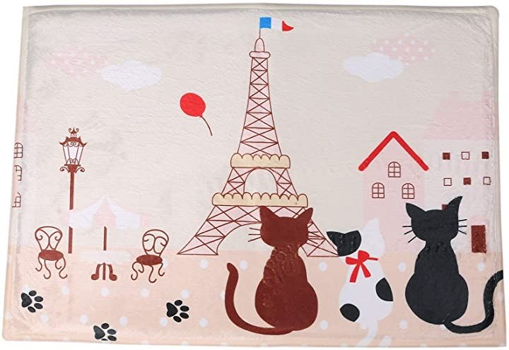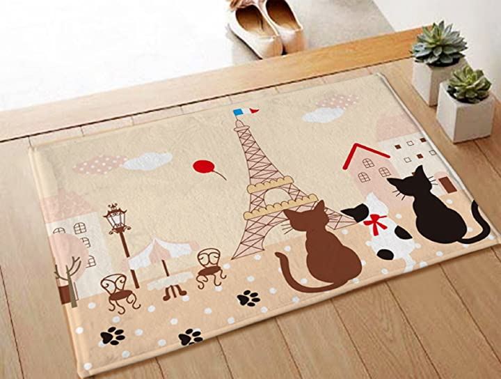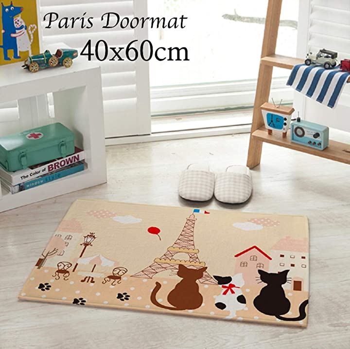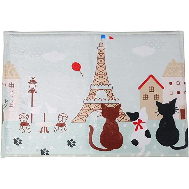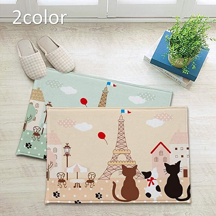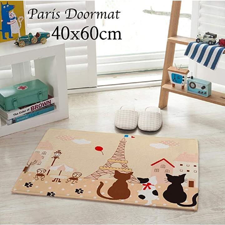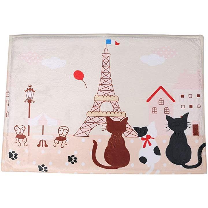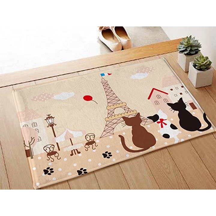玄関マット ネコ エッフェル塔 北欧 屋内 室内 おしゃれ かわいい 泥落とし ラグ カーペット 滑り止め リビング お風呂 吸水 抗菌 40cmx60cm