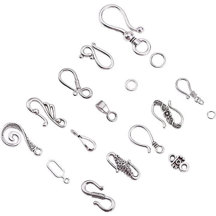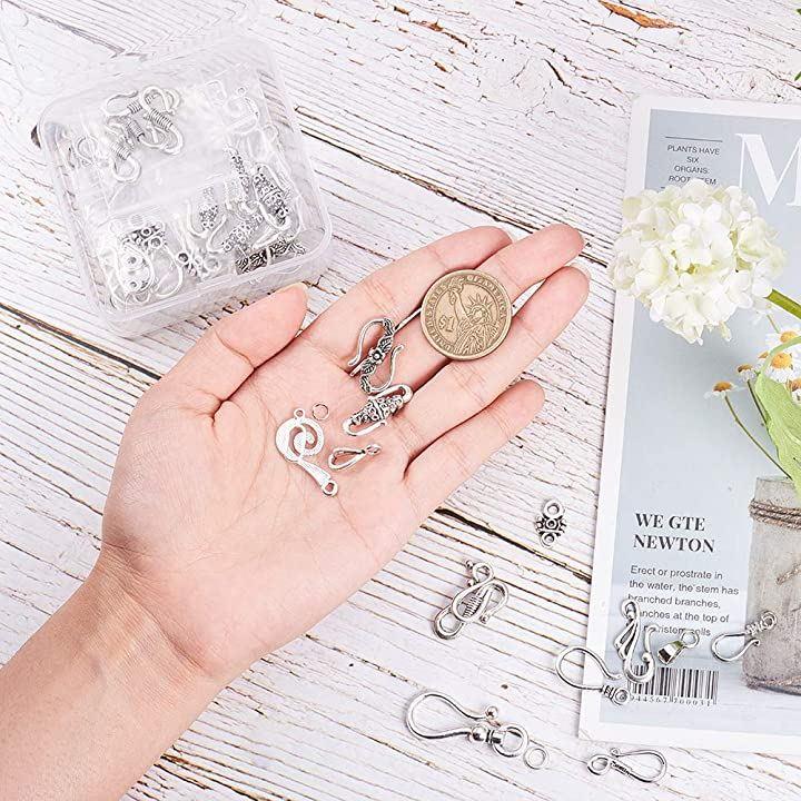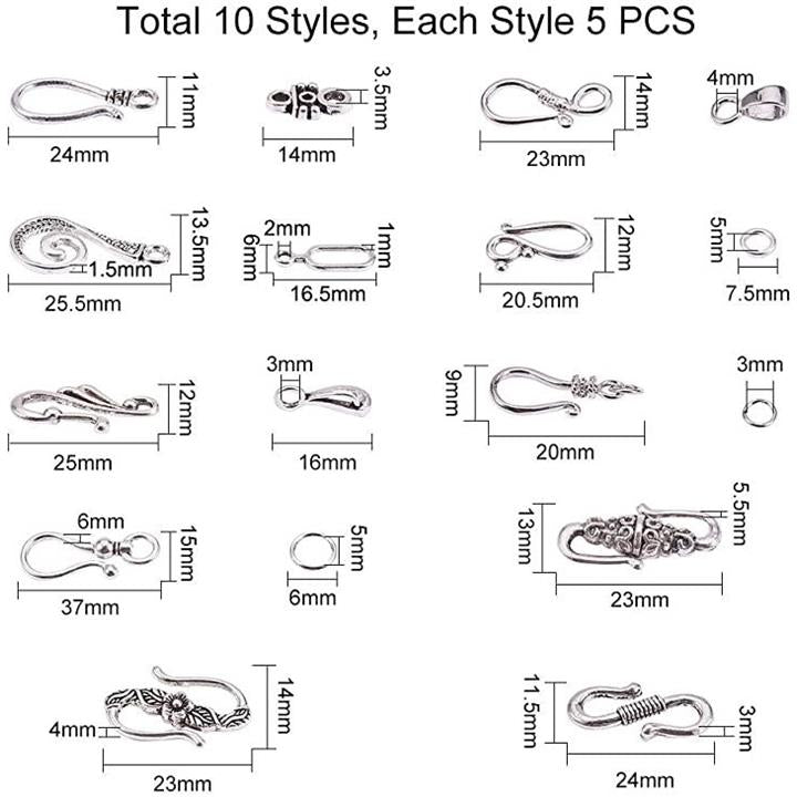 50セット 10スタイル アンティーク シルバー チベット 金具 留め具 エンドパーツ 接続金具 クラフトパーツ ネックレス用 ブレスレット用