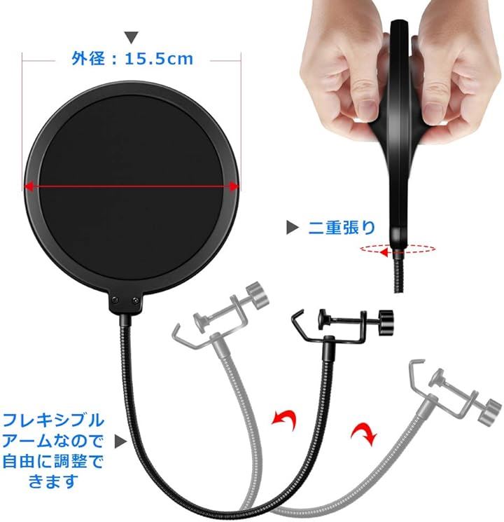 AKEIE 卓上マイクスタンド コンデンサーマイクスタンド 折りたたみ式 マイクアーム デスクアーム 変換アダプタ付き 日本語説明書付き「ポップガード セット」 |