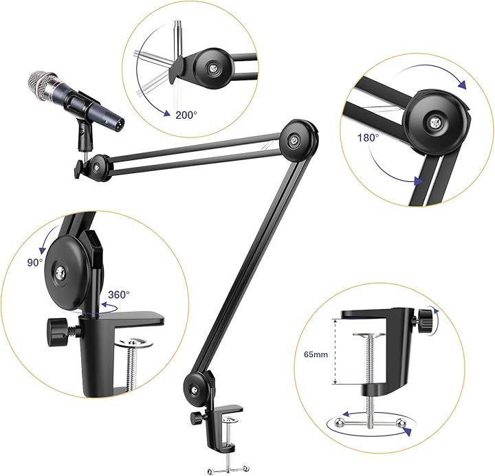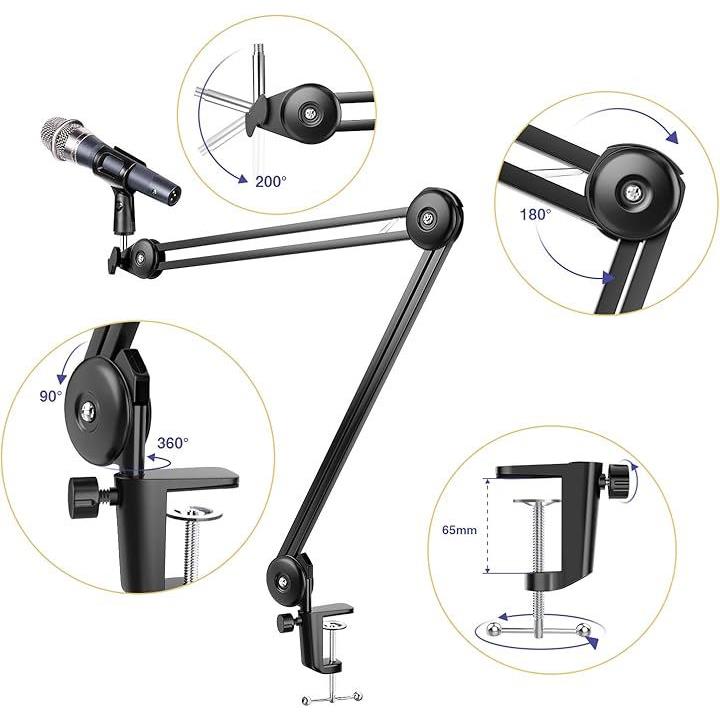 ・「ばねなく、調整便利」進化版マイクスタンドはスプリングレス設計を採用しており、スプリングをマイクブラケット鋼材に内蔵し、アームホルダは最大調整可能角度180度です。