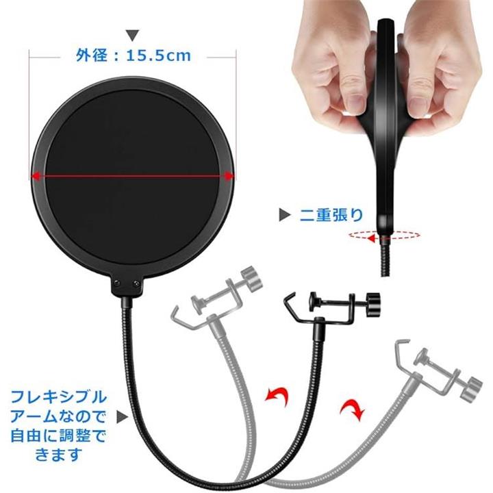 このポップガードは二重メッシュ仕様で、有効にノイズ防止してクリアな音質を録音できます。