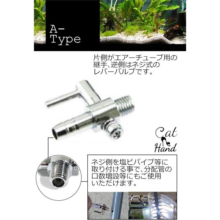 ハンド エアチューブ 用 一方コック レバー バルブ 分岐 管 水槽 エアー量