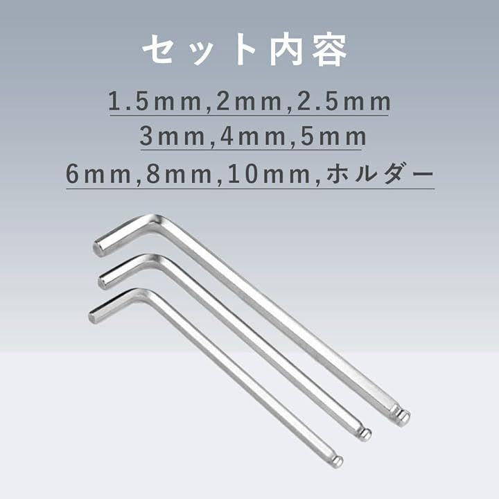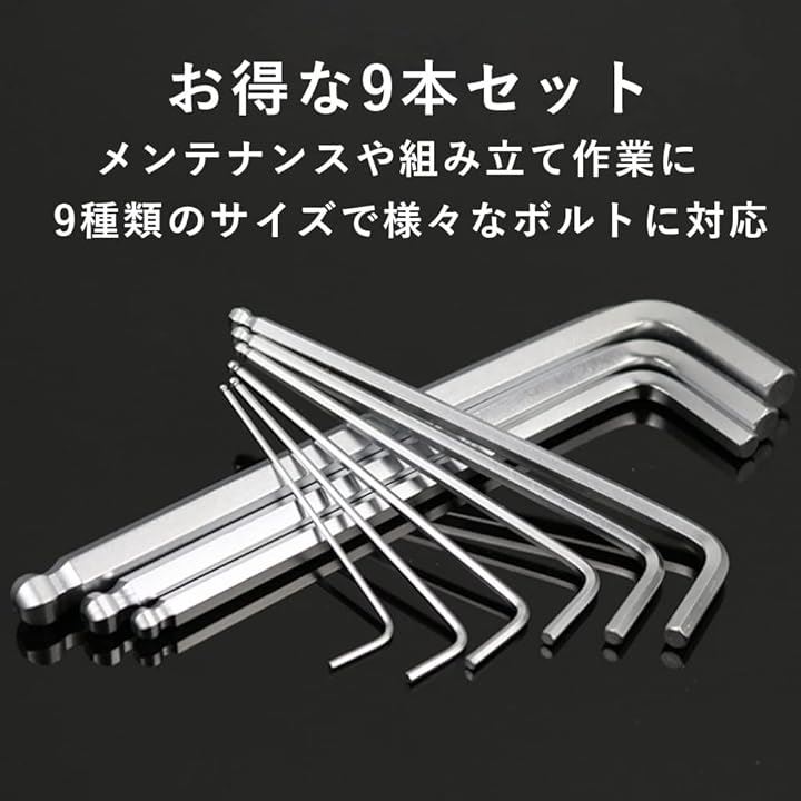 六角レンチ 六角棒レンチ ボールポイント ロング L型 工具 家具 組立 9本セット