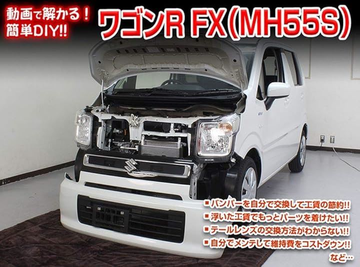 ・ルームランプ交換方法、ライト交換方法・ フロント(リア)バンパー交換方法・内張り交換方法などなど、ワゴンR FX MH55S の 各種パーツの取外し方法や取付け方法、改造やチューニングを解説したDVD。