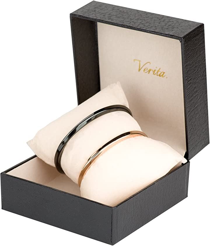 ペア バングル ブラック&ゴールド色 チタン製 / カップル ペアブレスレット < メンズ + レディース 2点セット 専用BOX付き >