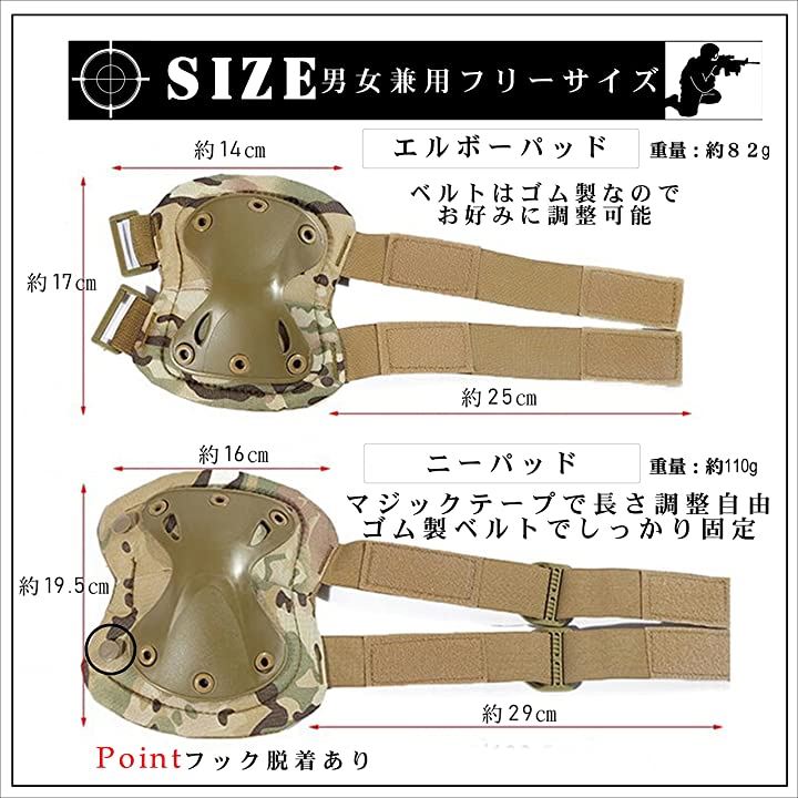 ・「サイズ・内容数」エルボーパット約14cmx約17cm(ベルトサイズ約25cm) ニーパット約16cmx19.5cm(ベルトサイズ約29c)肘・膝4点セット・コンパクト収納袋付き