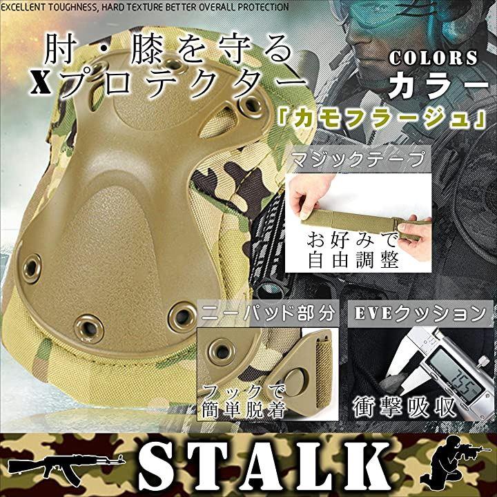 「STALK」最新カラー13種類 XTAK型 プロテクター エルボーパット ニーパット 肘 膝(4点・コンパクト収納袋セット) 自転車 登山 サバゲー スケボー 衝撃吸収 防御 (カモフラージュ) |