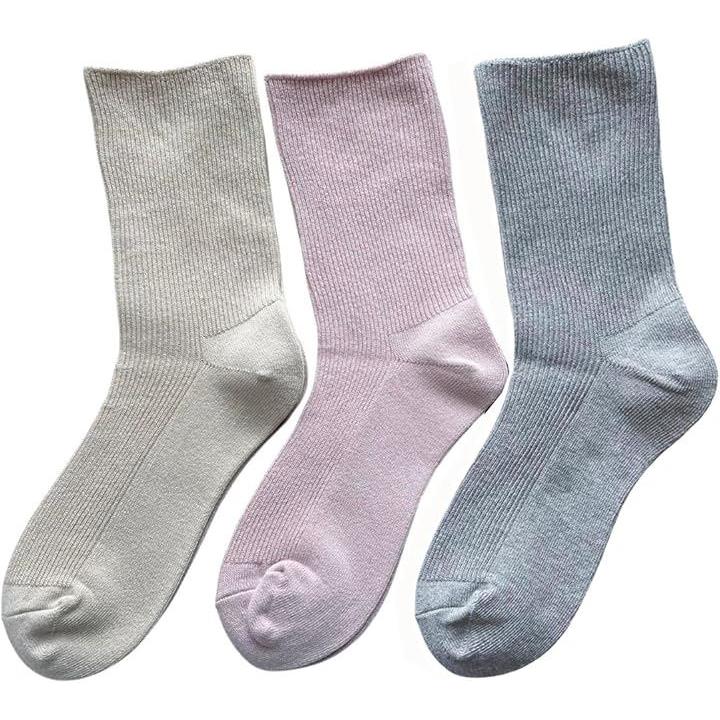 日本製 靴下 レディース 口ゴムなし ゆったり靴下 足元らくらく 3色3足組 色はお任せC09