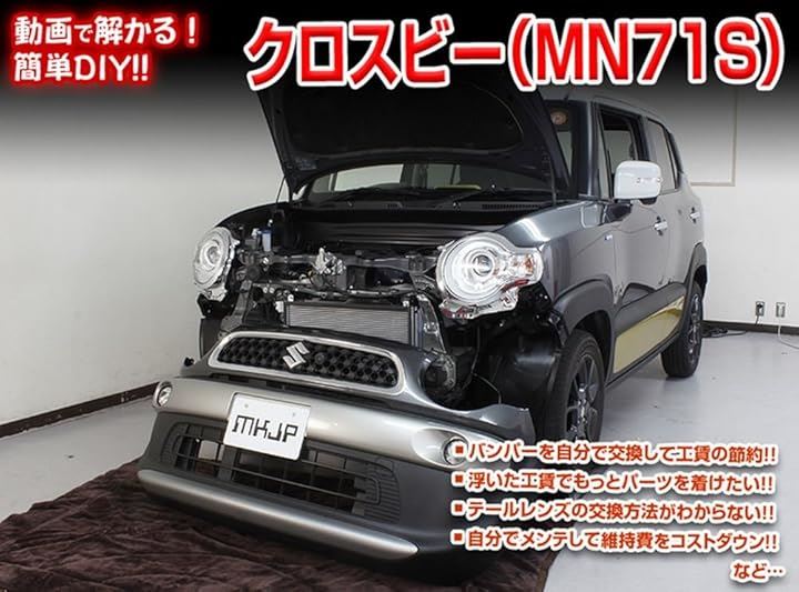 ・ルームランプ交換方法、ライト交換方法・ フロント(リア)バンパー交換方法・内張り交換方法などなど、クロスビー(MN71S) の 各種パーツの取外し方法や取付け方法、改造やチューニングを解説したDVD。