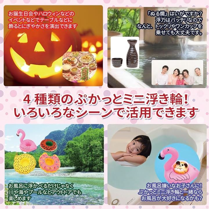 ぷかっとミニ 浮き輪 ドリンクカップ ホルダー コースター お風呂 バスタイム グッズ プール フラミンゴ ドーナッツ すいか セット 子供 大人 うきわ