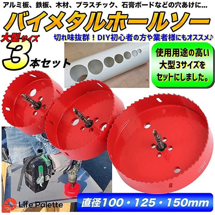 ライフパレット バイメタル ホールソー ホルソー セット 穴あけ 切削 工具 大きい 大型 3本セット |