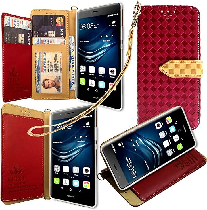 「ストラップ2本付」「GTO」Huawei P9 lite ケース 手帳型 カバー オリジナルハンドストラップ&ネックストラップ付 3点セット PUレザー&アンチグレアTPUケースを使用した手帳型PUレザーケース Ver3 |