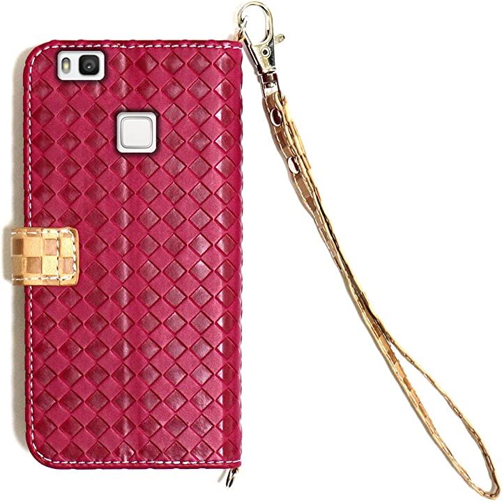 「ストラップ2本付」「GTO」Huawei P9 Plus ケース 手帳型 カバー オリジナルハンドストラップ&ネックストラップ付 3点セット PUレザー&アンチグレアTPUケースを使用した手帳型PUレザーケース マゼンタ |