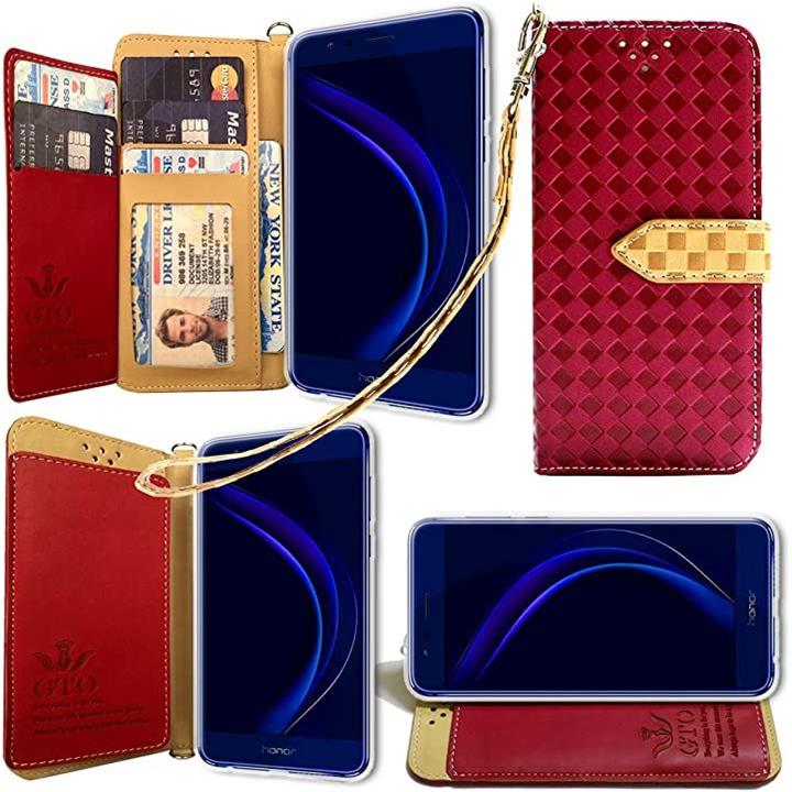 「ストラップ2本付」「GTO」Huawei honor 8 ケース 手帳型 カバー オリジナルハンドストラップ&ネックストラップ付 3点セット PUレザー&アンチグレアTPUケースを使用した手帳型PUレザーケース |