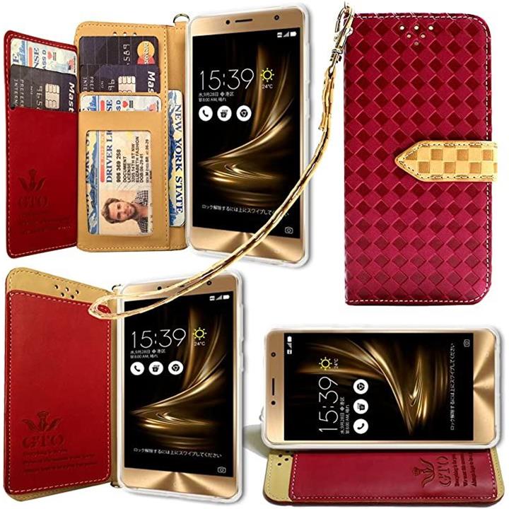 「ストラップ2本付」「GTO」エイスース SIM フリースマートフォン ZenFone 3 Deluxe ZS550KL ケース 手帳型 カバー オリジナルハンドストラップ&ネックストラップ付 3点セット PUレザー&アンチグレアTPUケースを使用した手帳型PUレザーケース |