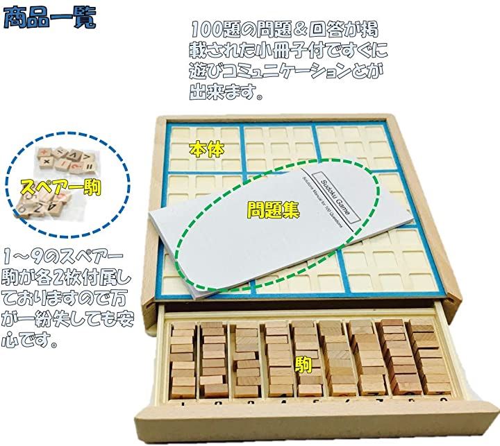 数独 すうどく 脳トレ 卓上 ボード ゲーム 9ブロックパズル 知育 玩具 木製 ナンプレ ナンバープレース 数字 活脳