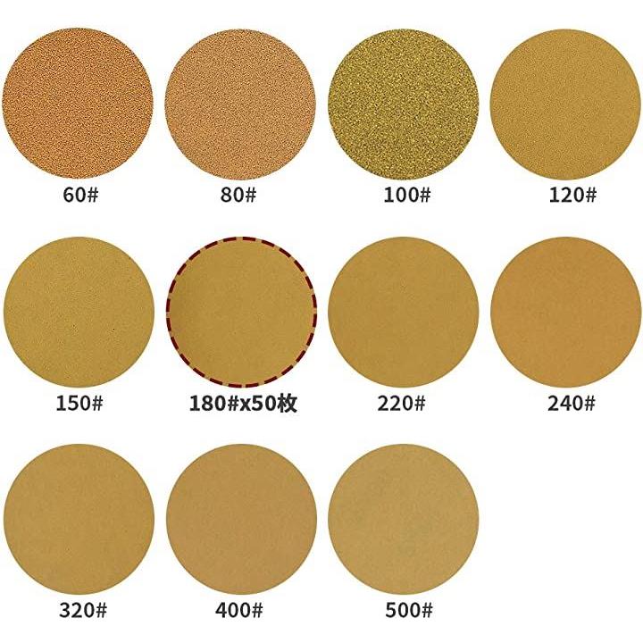 サンディングペーパー サンドペーパー 50枚 粒度 #180 穴あり マジック式 紙やすり φ125mm セット