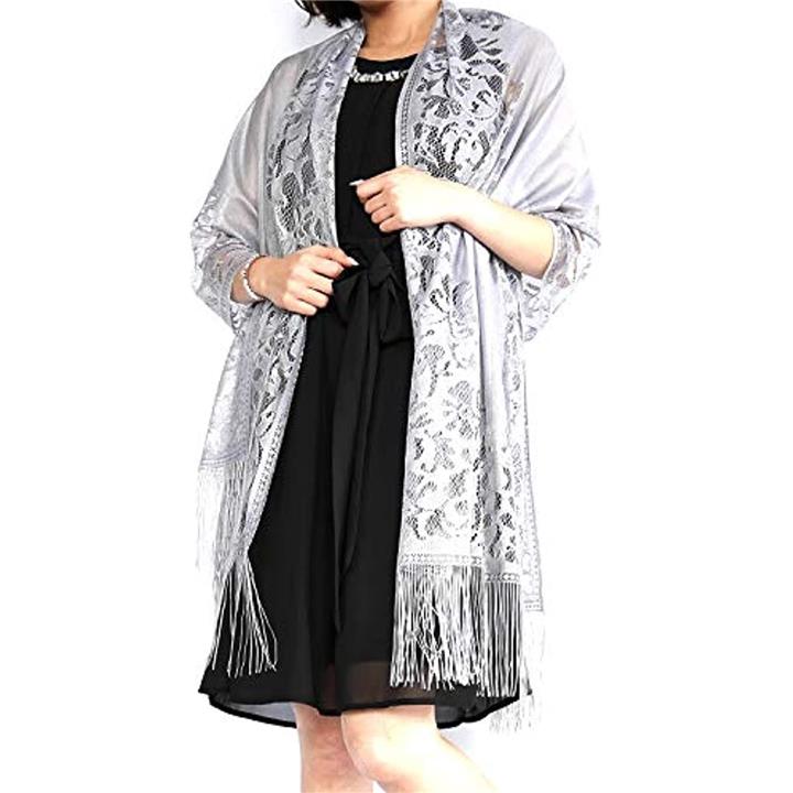 [イヴ エヴァン] ストール レース フォーマル 結婚式 二次会 パーティ パーティー ショール UVケア 冷房対策 慶弔 慶弔用 レディース グレー |